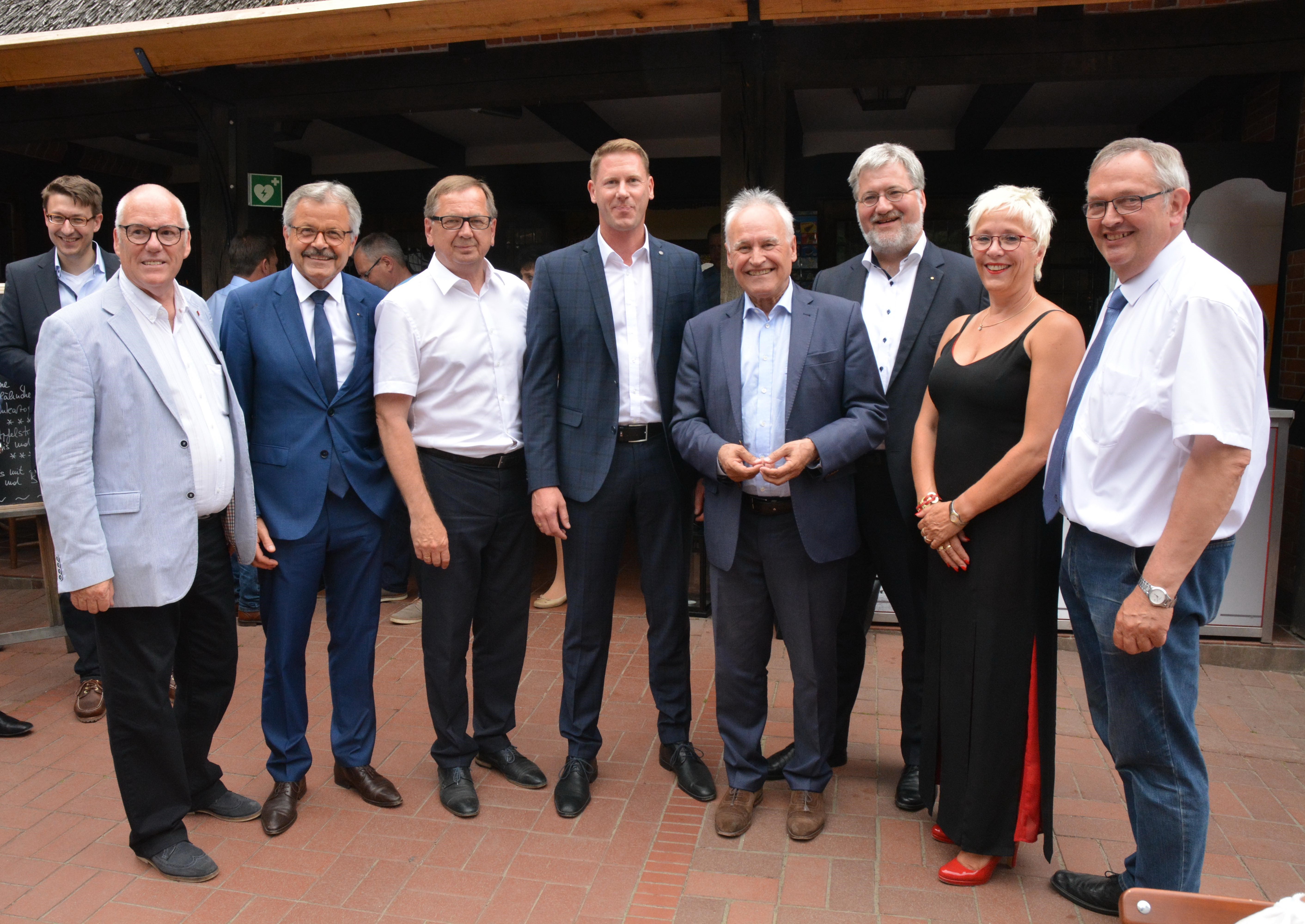 Es waren aber auch zahlreiche Gäste, wie z. B. die Bundestagsabgeordnete Silvia Breher, Landtagsmitglied Christoph Eilers, Bürgermeister Dr. Wolfgang Wiese (CLP) und Bürgermeister Herman Gels (VEC) der Einladung gefolgt. Zu den Rednern zählten Maik Beermann (MdB), Dirk Toepffer (MdL), Karl-Heinz Bley (MdL) sowie der stellvertretende Landesvorsitzende der Niedersachsen-MIT H.-Dieter Klahsen. Als Hauptredner konnte der Landesverband Erwin Huber (Staatsminister a. D.), früherer CSU-Parteivorsitzender und Vorsitzender des Wirtschaftsausschusses der CSU im bayerischen Landtag, gewinnen.